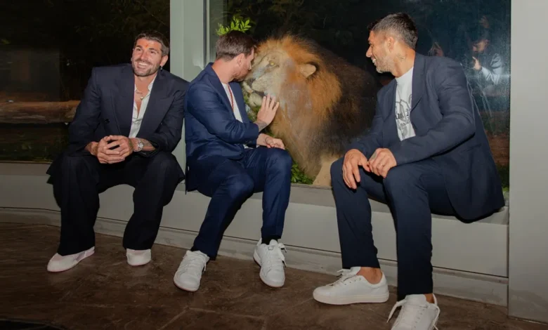 मेसी शीशे की दीवार के आरपार कभी शेर के साथ पंजा मिलाते हुए तो कभी गले मिलने को आतुर टाइगर के साथ फोटो खिंचाते हुए नजर आए।