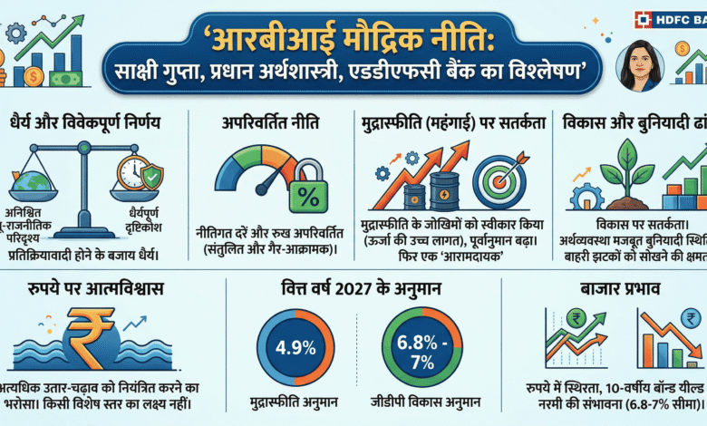 केंद्रीय बैंक ने मुद्रास्फीति के बढ़ते जोखिमों को स्वीकार करते हुए (ऊर्जा की उच्च लागत के कारण) वित्त वर्ष 2027 के लिए अपने पूर्वानुमान को बढ़ा दिया है, जबकि विकास को लेकर सतर्कता बरती है। हालांकि, इस दृष्टिकोण को इस तथ्य की पुनरावृत्ति से संतुलित किया गया कि युद्ध से पहले अर्थव्यवस्था मजबूत बुनियादी स्थिति में थी, जो वर्तमान पश्चिम एशियाई झटके के प्रति अर्थव्यवस्था की अवशोषक क्षमता को बढ़ाती है। इसके अलावा, आरबीआई ने संकेत दिया कि मुद्रास्फीति के शुरुआती बिंदु भी आरामदायक हैं, जिसका अर्थ है कि वित्त वर्ष 2027 में मुद्रास्फीति आरबीआई के लक्ष्य सीमा के भीतर रह सकती है।